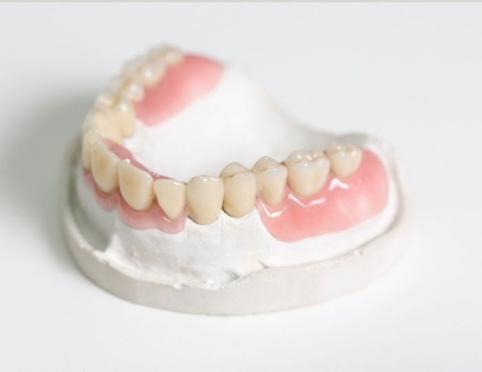 歯ぐきの色に近い樹脂を使うことで、装着時の見た目が自然に近づきます。